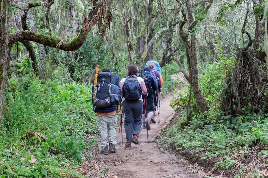Upon arrival, complete the check-in process at the park office and finalize any last-minute preparations for the climb. The initial leg of the trek takes us through the lush rainforest, ascending a hill to reach Machame Camp, where we will spend the first night.