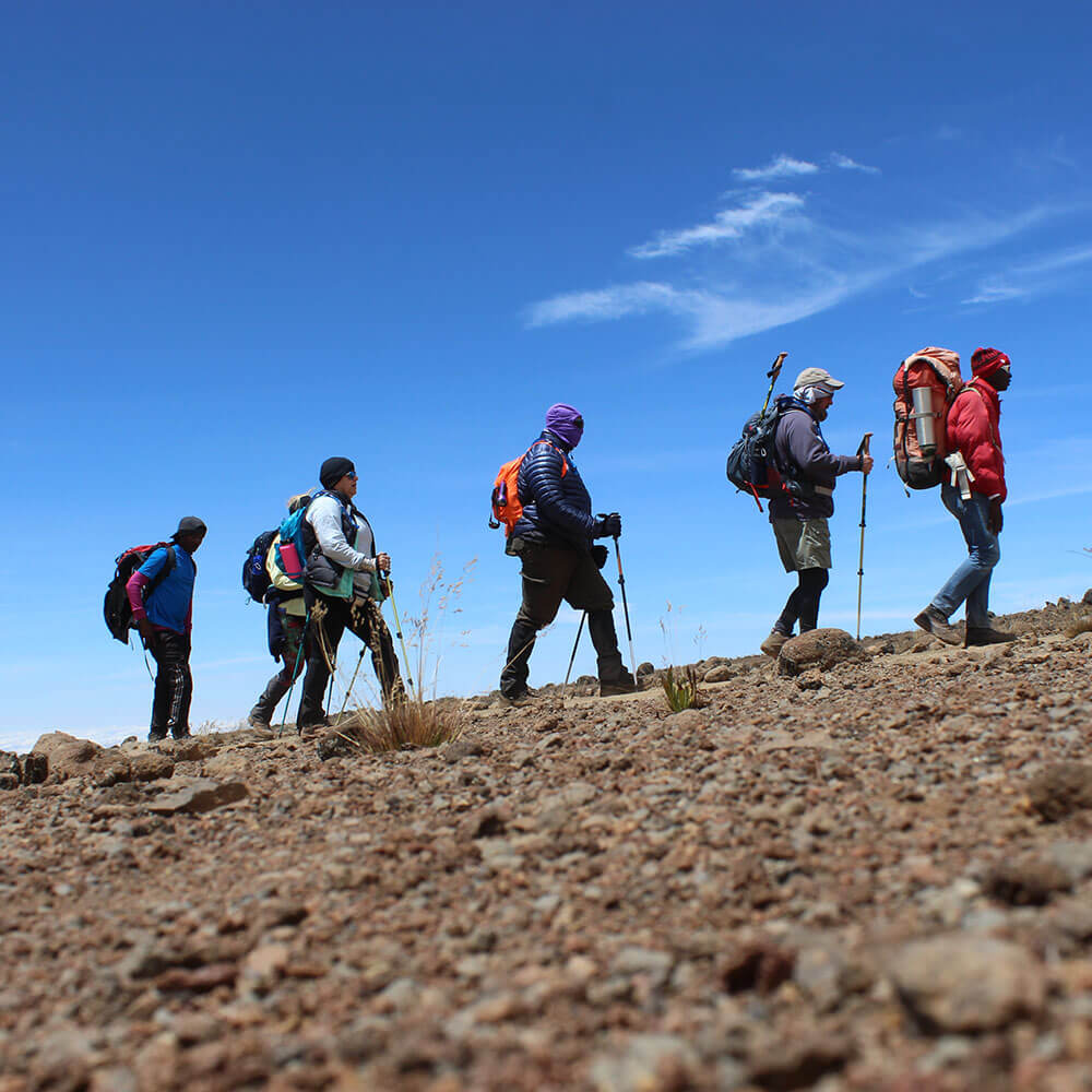 Considered one of the easier routes for ascending Kilimanjaro, the Rongai Route starts from the northern side of the mountain and descends via the Marangu trail, with summit night from Kibo Hut following a steep path shared with the Marangu route, passing Gilman’s Point en route to Uhuru Peak.
