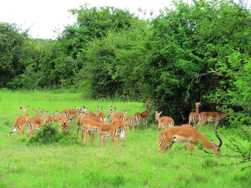 The park is home to a wide variety of mammals, including Uganda’s largest population of impalas, the animal after which the capital, Kampala, is named. Other wildlife in the park includes buffaloes, zebras, elands, oribi, reedbucks, and topis. Sitatunga antelopes can be spotted in the park’s swamps, while klipspringers are found on the hills. The park also hosts seasonal herds of elands.