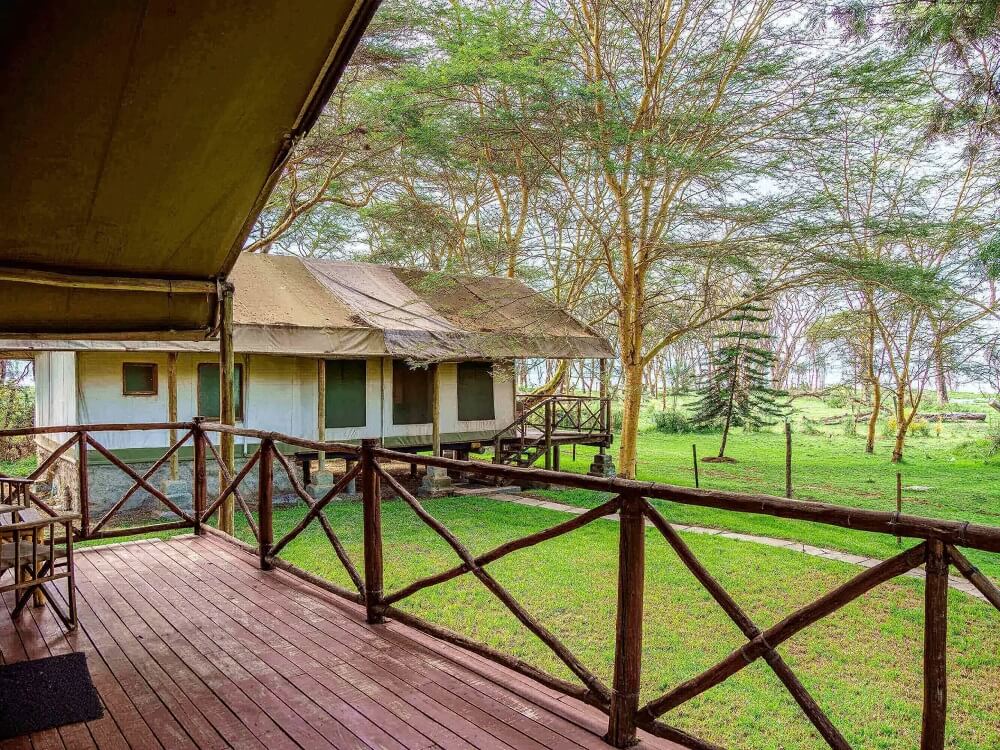 Located in the northern part of the park, Flamingo Hill Tented Camp provides an exclusive, serene stay with sweeping views of Lake Nakuru. The camp features 25 spacious, furnished tents, each equipped with: