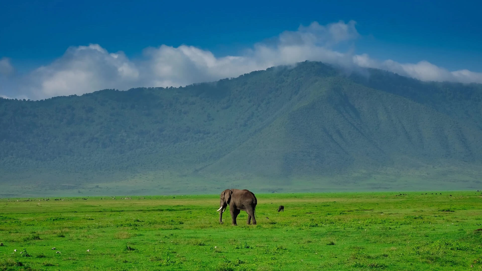 The crater floor, dominated by open grasslands, supports an extraordinary diversity of wildlife, making it one of Africa’s most densely populated conservation areas.