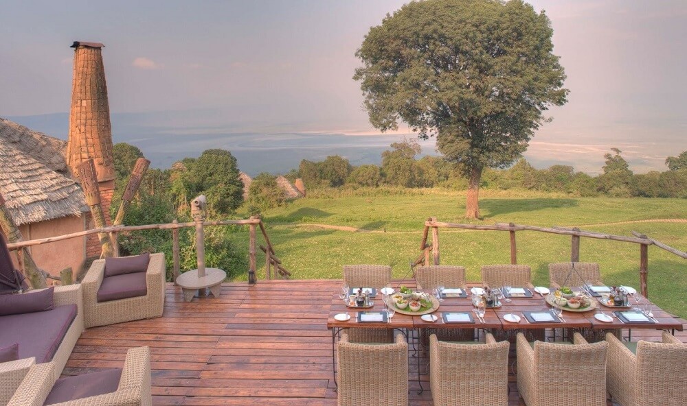 Five lodges are located along the rim of the Ngorongoro Crater, offering panoramic views of the crater floor and surrounding highlands.